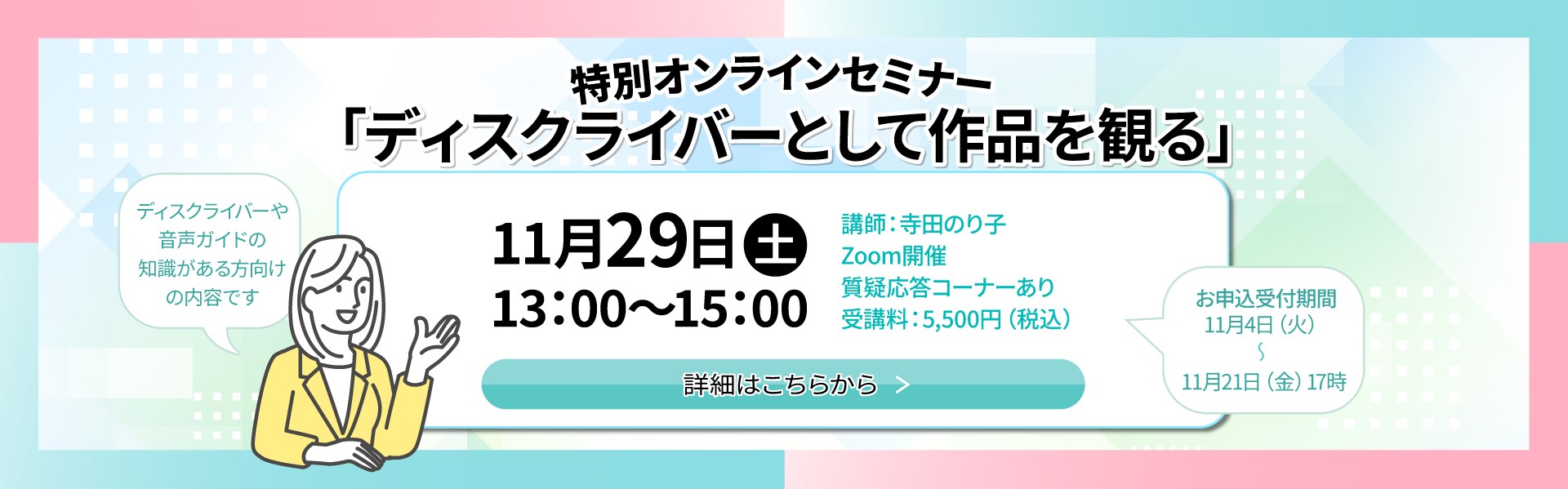 音声解説付与率の向上のため、ディスクライバー育成講座を行っています。