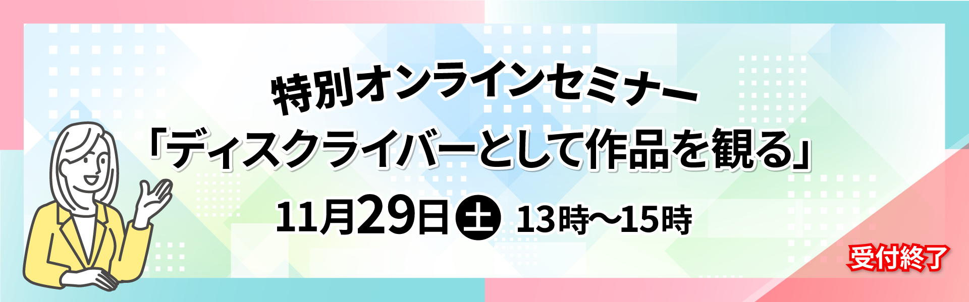 | 特別オンラインセミナー 「ディスクライバーとして作品を観る」 |